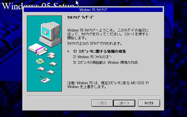 所以只能用这种传统方法,在硬盘上先安装DOS,然后从硬盘的DOS安装Windows 95。